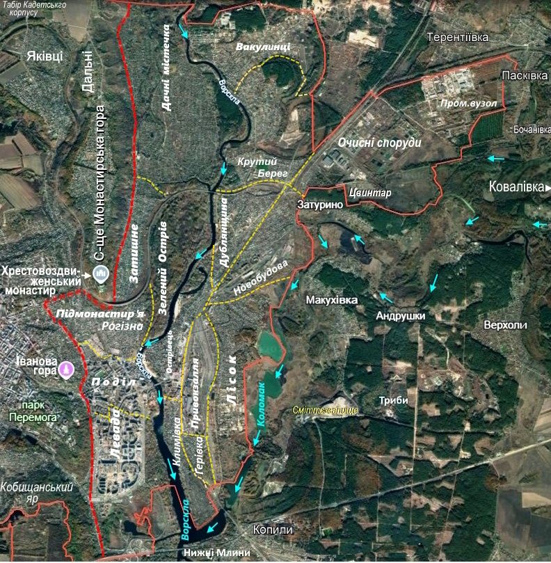 Нинішні й колишні поселення в долині Ворскли у сучасних межах Полтави