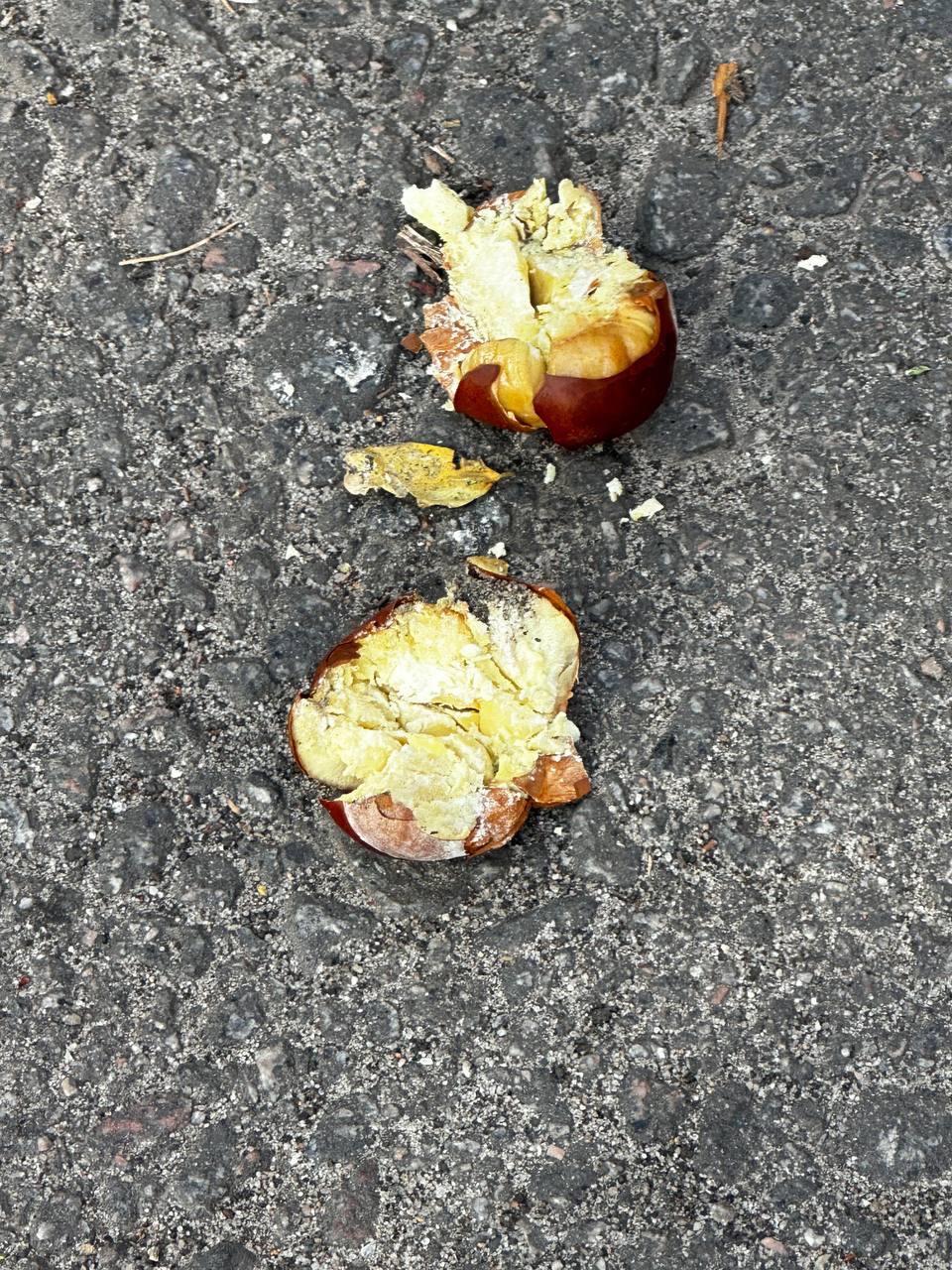 І тут починається хвиля паніки в соцмережах: «Вулиці поливають хімією!», «Це кислотні дощі!», «Небезпечні речовини падають нам на голову!» Звучить гучно, але, насправді, це лише звичайні каштани. Жодної хімії, жодної небезпеки.