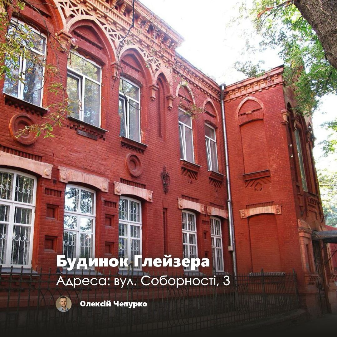 На початку ХХ століття лікар-окуліст Яким Глейзер звів цей дім у стилі модерн із готичними елементами та єврейською символікою. На першому поверсі він приймав пацієнтів, а на другому жив із родиною. У Другу світову будинок згорів, але його відновили й передали під квартири.