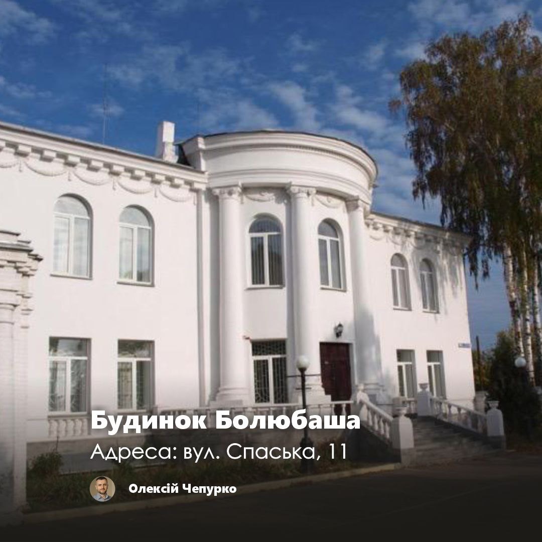У 1912 році цей двоповерховий особняк у стилі пізнього ампіру звів хорольський поміщик Володимир Болюбаш — освічений і діяльний чоловік, член археологічної комісії. На другому поверсі облаштував власну картинну галерею. Під час війни будинок став офіцерським шпиталем, після революції — націоналізований.