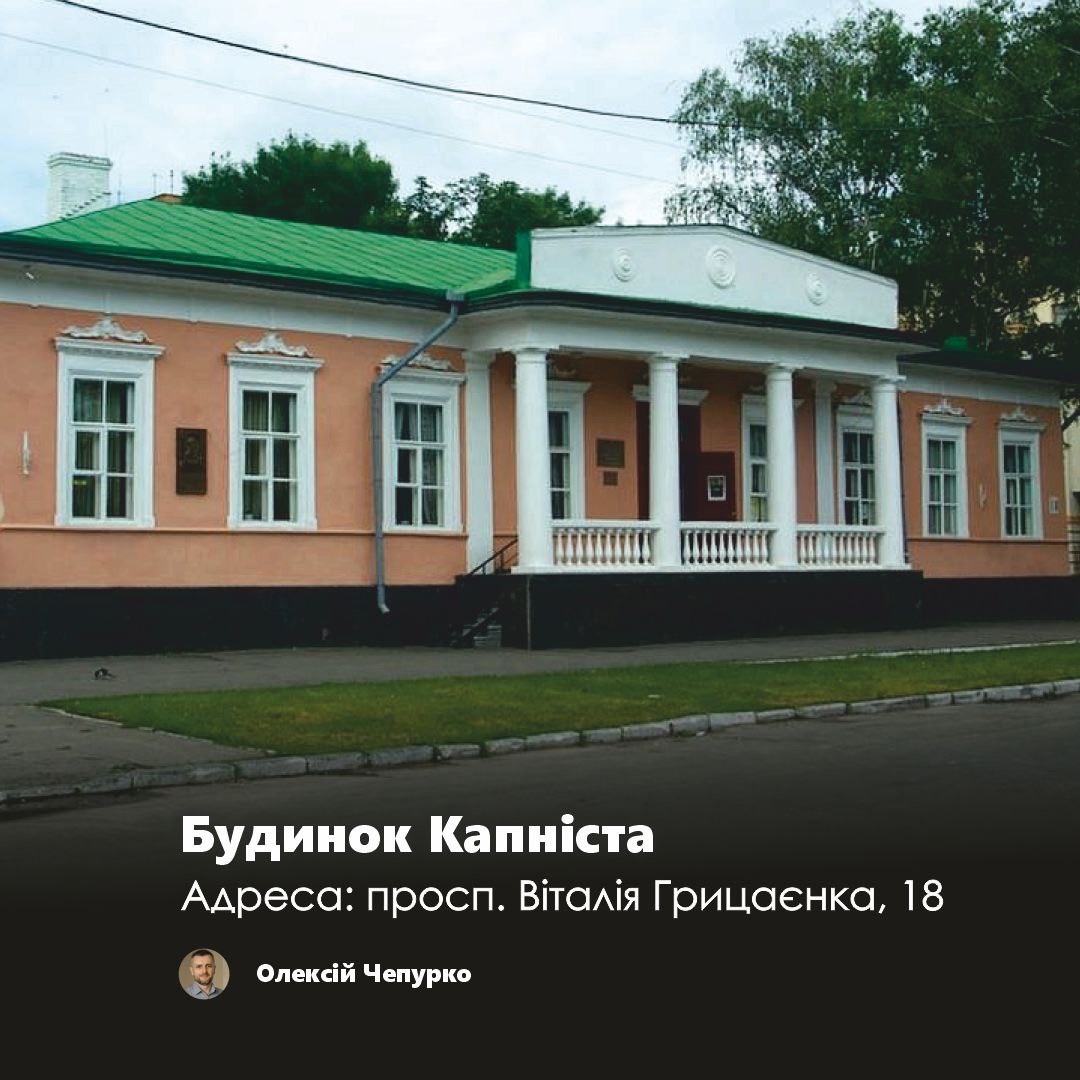 Цей житловий будинок звели у 1805 році на замовлення поета, просвітника та громадського діяча Василя Капніста. З 1802 року він був генеральним суддею Полтавської губернії, директором народних училищ, а у 1817–1822 роках — губернським маршалом дворянства. За спогадами родини, особняк зводили для зимового перебування. Сьогодні тут розміщено літературно-меморіальний музей Івана Котляревського.