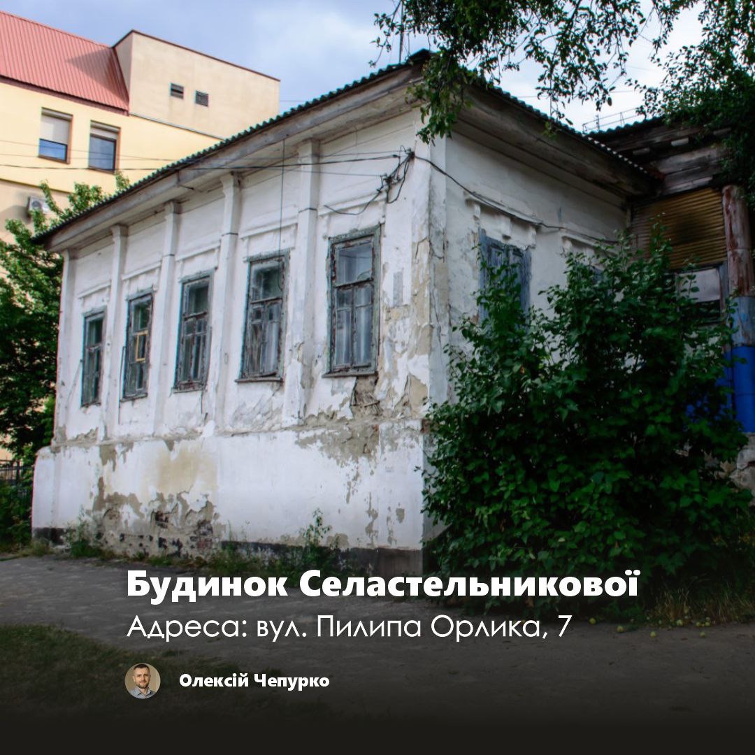 Ймовірно, найстаріший житловий будинок Полтави. Точна дата його будівництва невідома, але на плані міста 1805 року він уже позначений як дім генеральші Селастельникової. Дерев’яна споруда повністю імітує кам’яну архітектуру — рідкісний приклад майстерності того часу. І дивовижно: у будинку досі живуть люди.