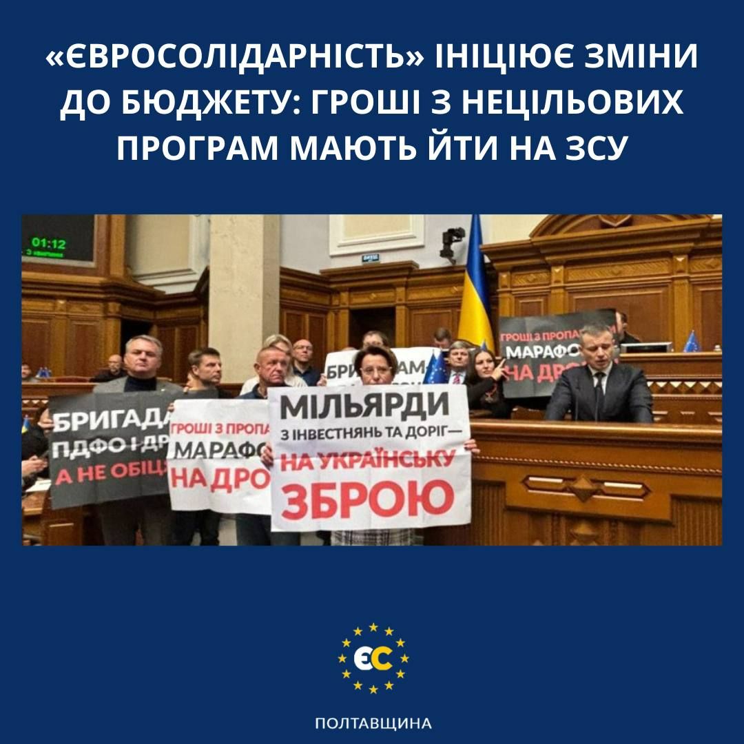 Депутати з фракції «Європейська Солідарність» ініціюють зміни до Державного бюджету, щоб кошти з нецільових програм передати на потреби Сил оборони.