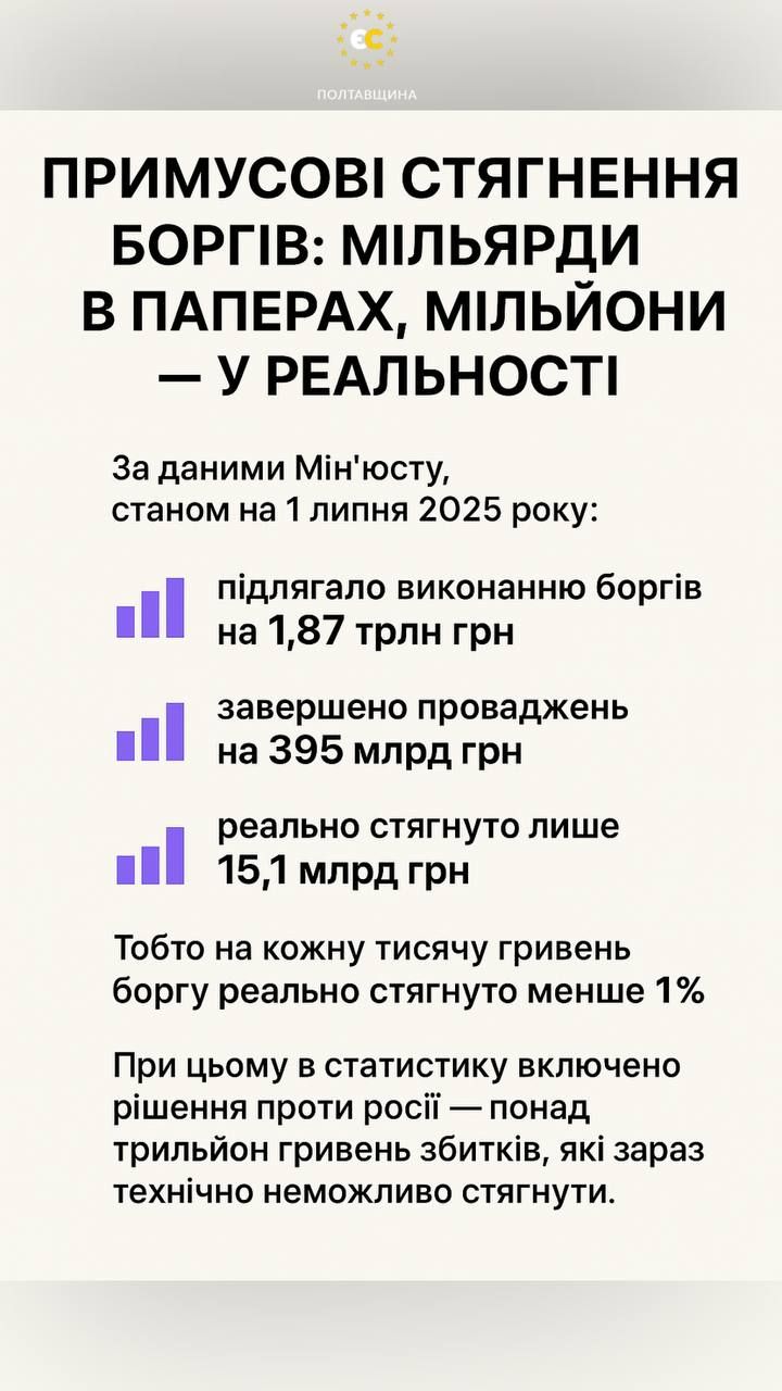 Примусові стягнення боргів: мільярди в паперах, мільйони — у реальності.