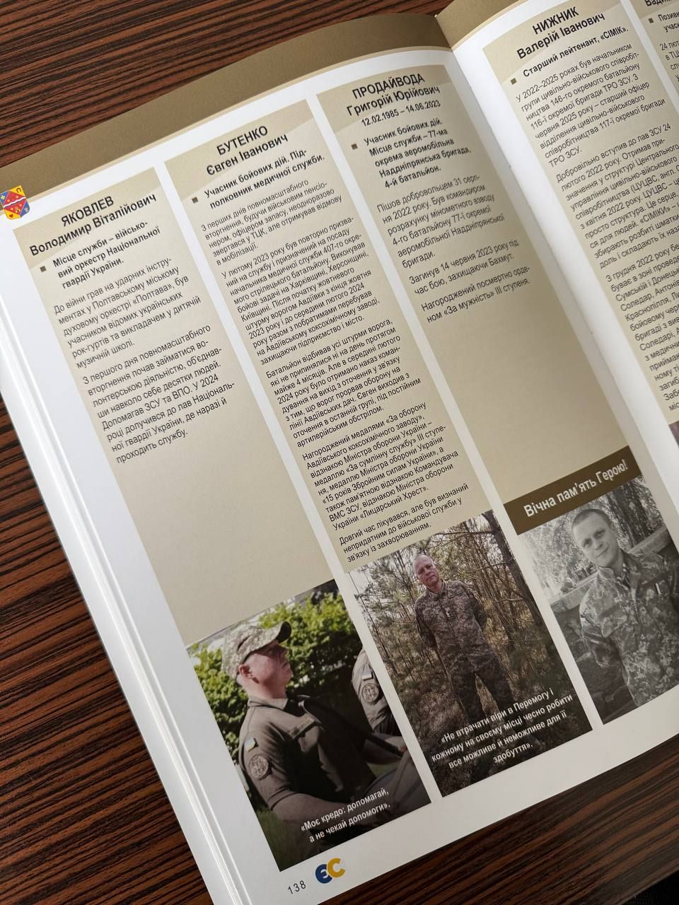 У виданні зібрано історії представників команди «Європейської Солідарності» з різних регіонів України, які приєдналися до Сил оборони. Це розповіді людей різних професій і життєвого досвіду, яких об’єднав спільний свідомий крок – стати на захист Батьківщини.