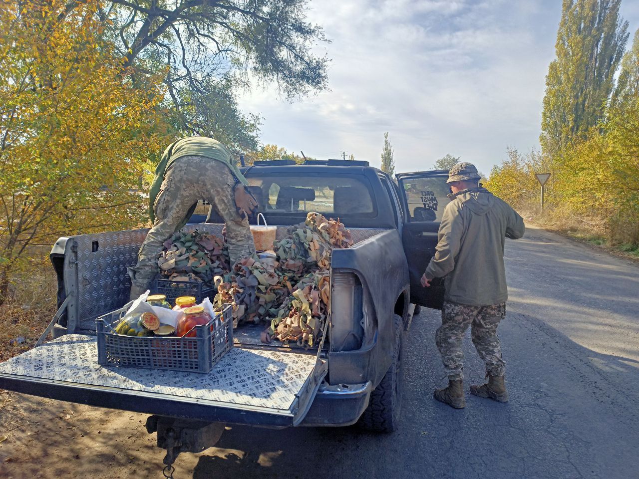 Волонтери нашої громадської організації "Європейська Україна", на чолі з її керівником Сергієм Глобою, доставили, разом з гуманітарною допомогою, до місця несення військової служби, після тривалого лікування в результаті отриманих поранень під час виконання бойового завдання, командира бронегрупи 5 окрема штурмова Київська бригада, що нищить ворога на Покровському напрямку.