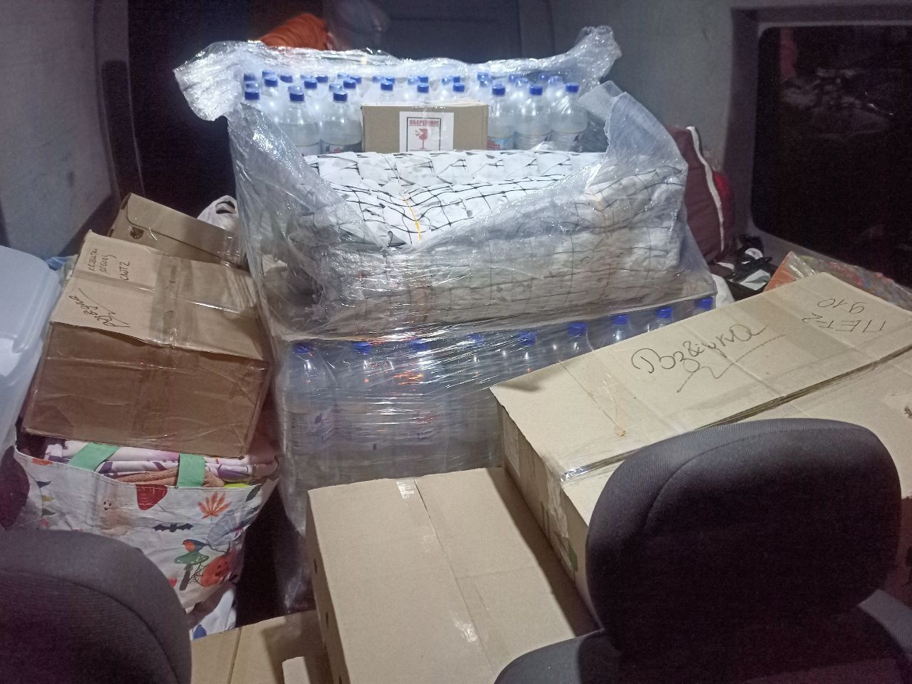 Наші волонтери зібрали, закупили, спакували та особисто доставили наступну гуманітарну допомогу: вода питна газована, солодкі газовані напої, енергетики, ноутбук (+сумка і мишка), відеокарти, речі для стабілізаційних пунктів (ковдри, пледи, подушки, постільна білизна, рушники, одяг), гума для авто, газові балончики, маскувальні сітки, скотч, робочі рукавички, згущене молоко, мед, продукти харчування швидкого приготування, домашні смаколики (вареники, печиво, пироги, налисники, сирники, венигрет), вологі рушники, творог, плавлені сирки, масло вершкове, сухе молоко, м'ясо баранів, сало солене, вологі серветки, маскувальний костюм, військова омуніція...