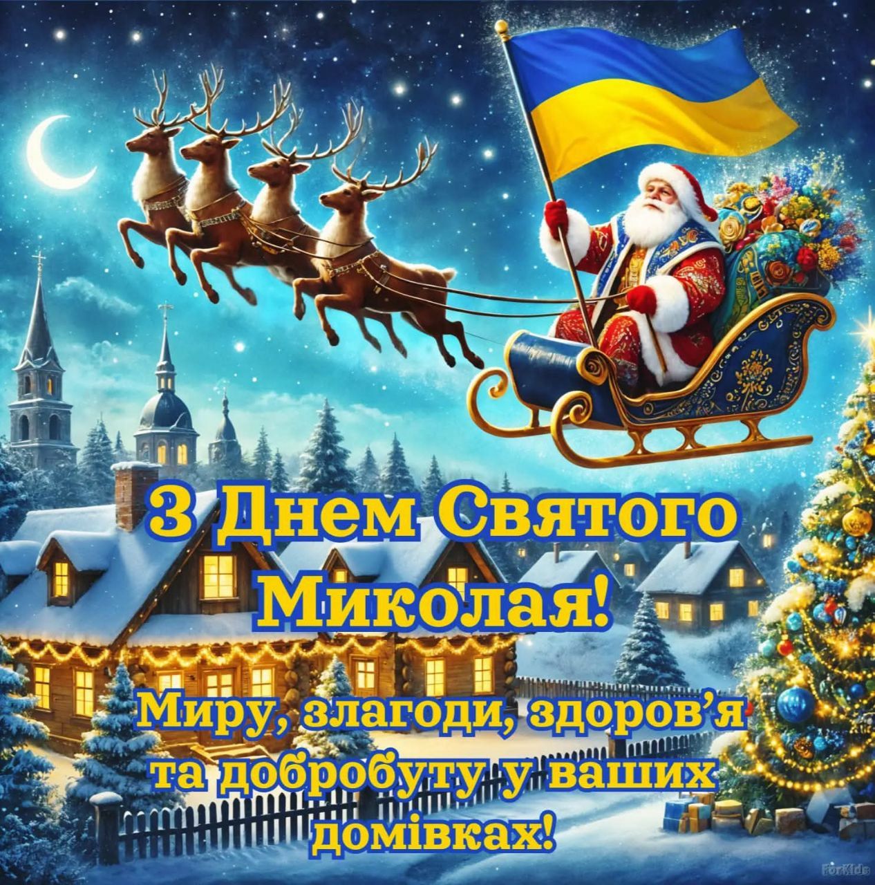 Бажаємо доброти, щастя і тепла. Міцного здоров'я вам і вашим дітям! Нехай Чудотворець захистить вашу сім'ю від усіх негараздів і дарує вам удачу у всьому. Перемоги Україні та мирного неба над нашими головами!
