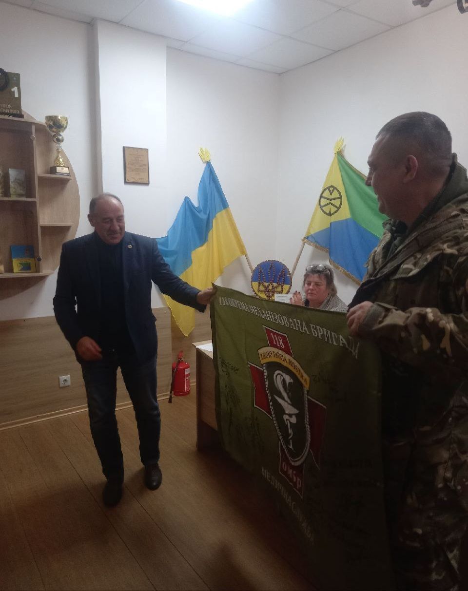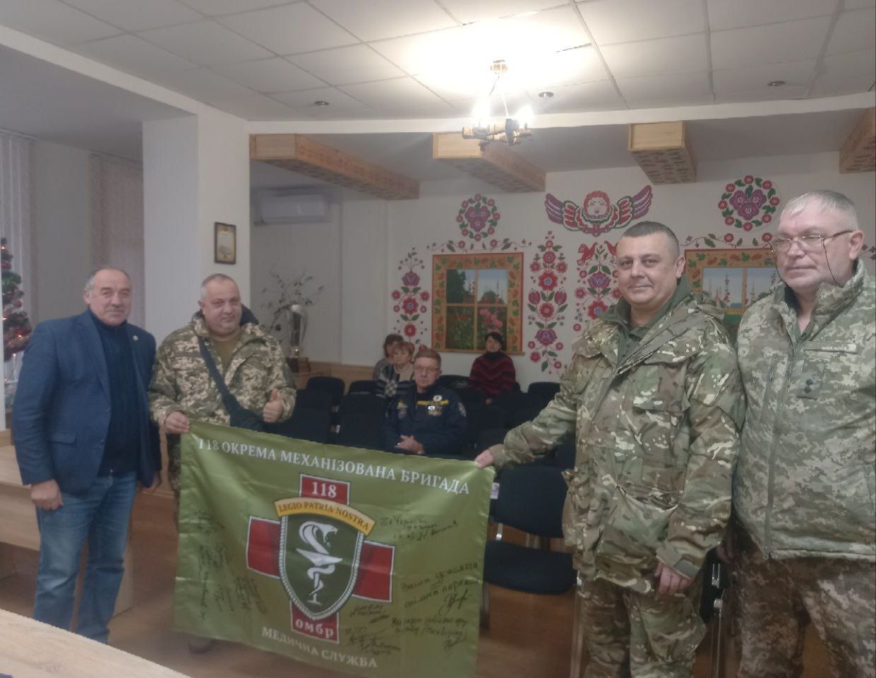 В знак подяки, офіцери, що представляли бригаду, презентували Мачухівській громаді прапор бойових медиків 118 ОМБр з автографами військових.