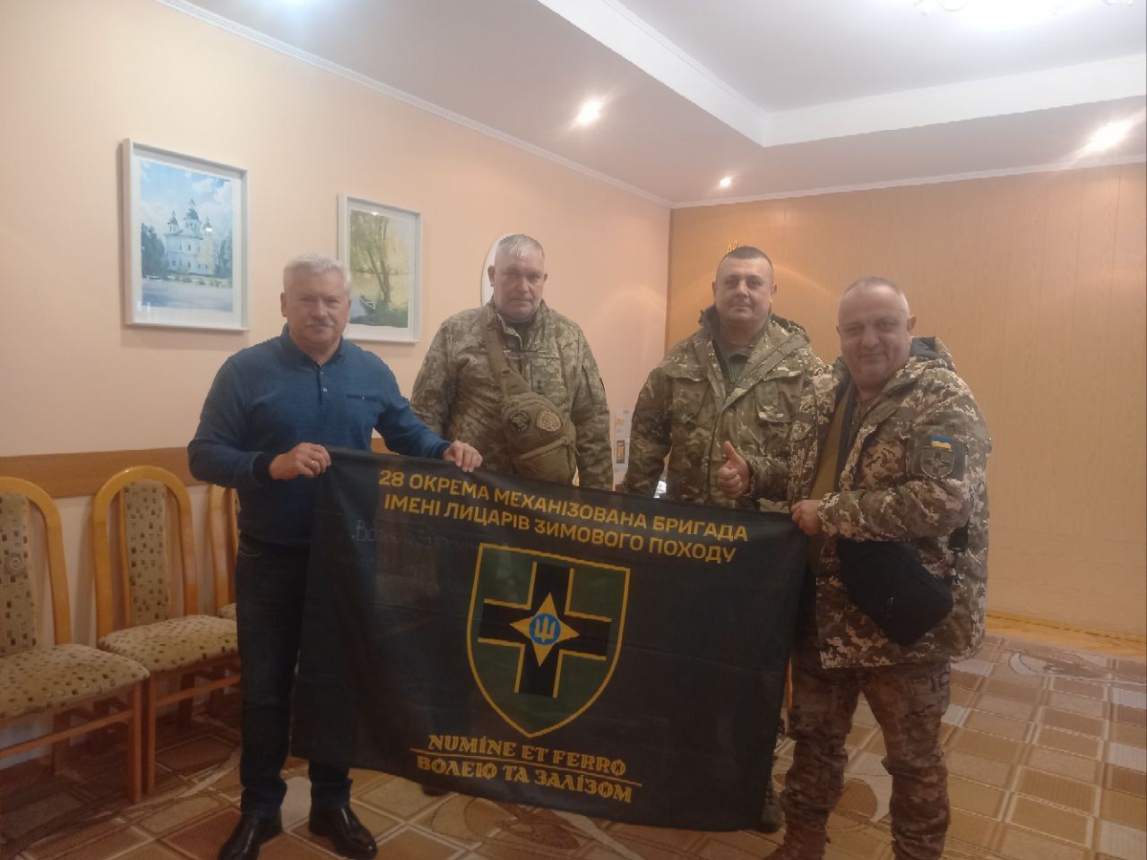 В знак подяки, Сергій Глоба з побратимами презентували Лубенській громаді пропор його легендарної 28 окремої механізованої бригади імені Лицарів Зимового Походу, що тримають найгарячіші напрямки фронту Донецької області.