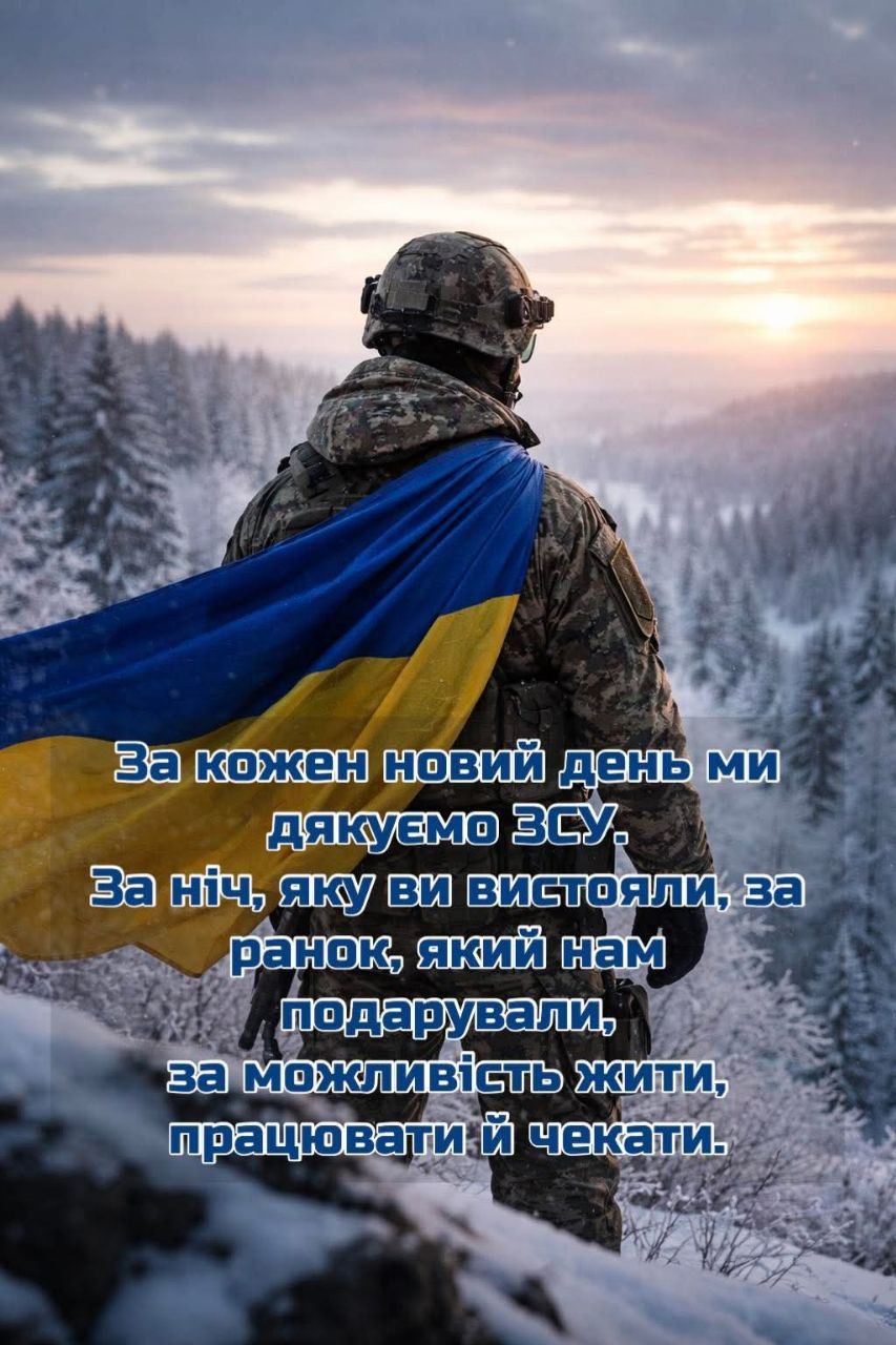 Хочемо, в черговий раз, подякувати нашим Незламним Захисникам.Дякуємо Вам не тільки сьогодні, а і кожен день, кожну годину, кожну хвилину ... За те, що ми живемо, що Ви нас оберігаєте, за будь-якої погоди, вдень та вночі. Ви відстоююте нашу ПЕРЕМОГУ ціною власного здоров'я та життя.