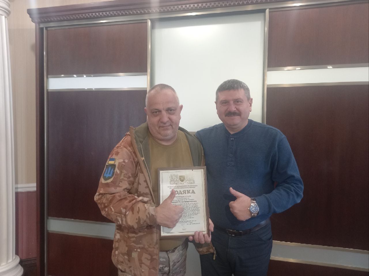 Також Сергій Глоба вручив подяку Віктору Кордубану за активну громадянську позицію, патріотизм та допомогу військовослужбовцям 28 ОМБр.