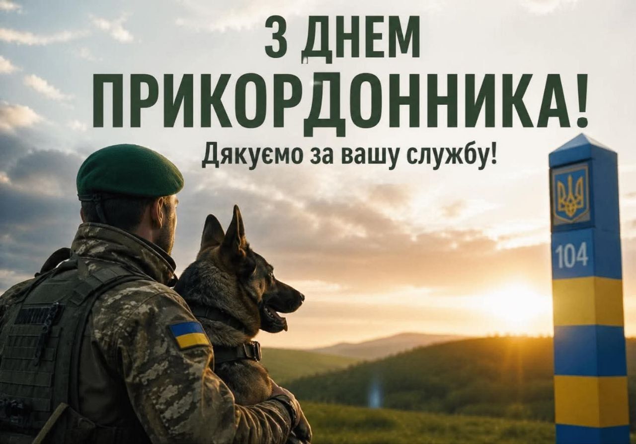 Шановні прикордонники та ветерани прикордонної служби!Від щирого серця вітаємо вас із професійним святом — Днем прикордонника України!Бути прикордонником — це не просто професія, це покликання мужніх, самовідданих та вірних синів і доньок своєї Батьківщини. Саме ви є тим першим надійним щитом, який стримує ворога, і тією стіною, за якою починається наш спокій.