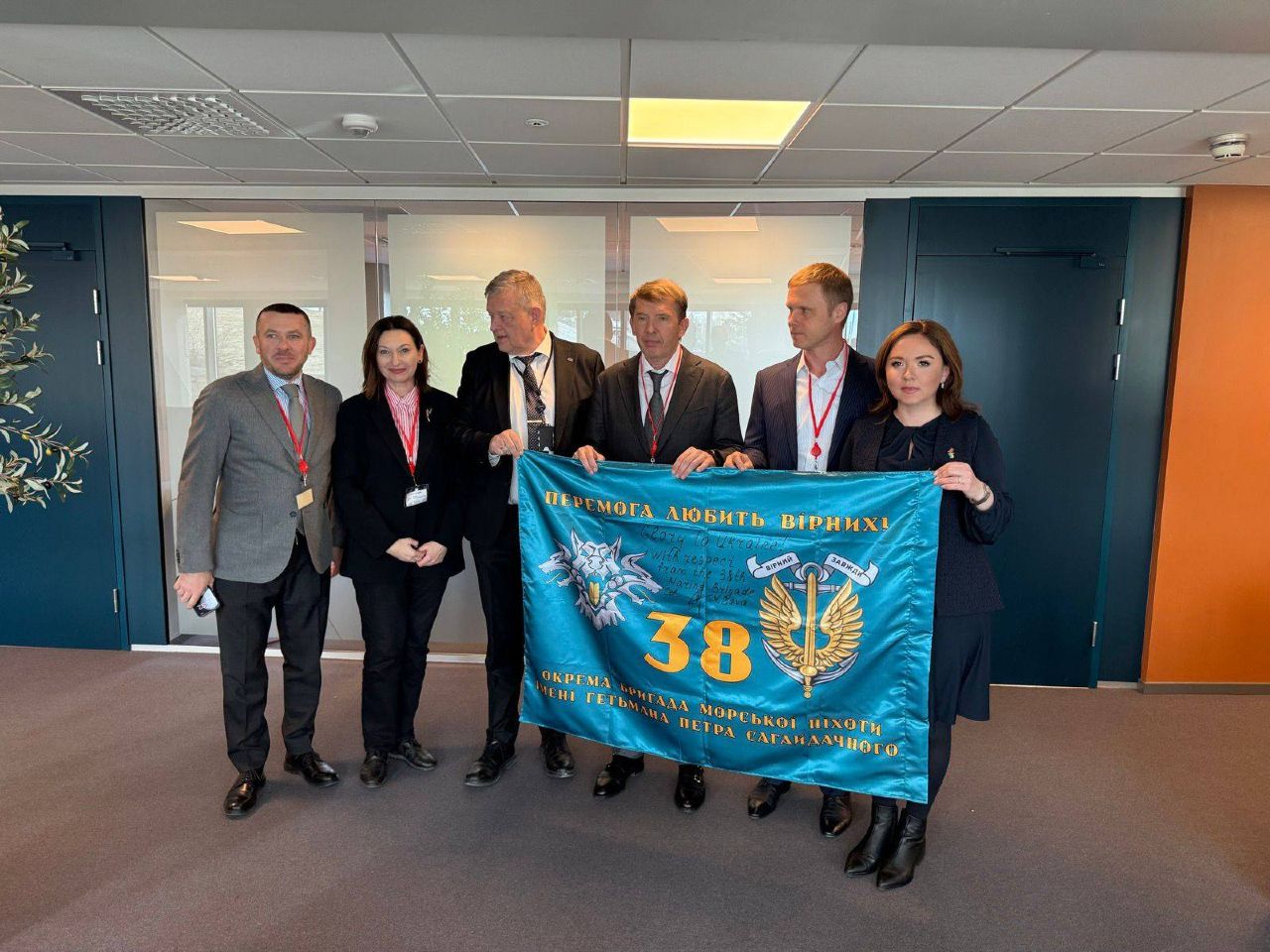 Як важливий символ вручив директору Nammo прапор славетної 38-ї окремої бригади морської піхоти, який спеціально для нього був підписаний керівництвом бригади, а також ще один символічний подарунок - уламок збитого російського “шахеда”.
