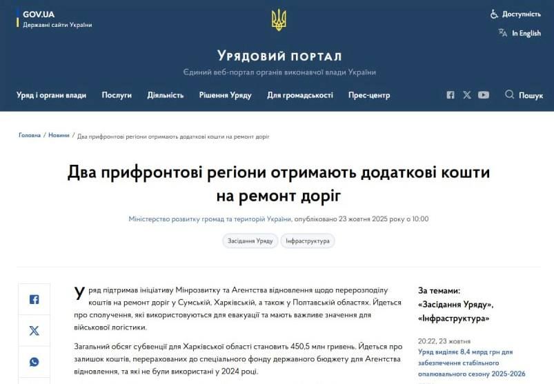 https://www.kmu.gov.ua/news/dva-pryfrontovi-rehiony-otrymaiut-dodatkovi-koshty-na-remont-dorih