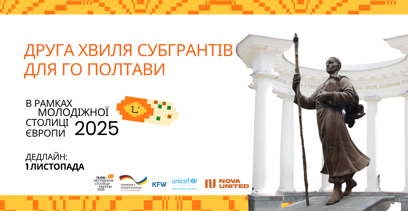 Даний конкурс субгрантів передбачений для громадських організацій Полтави, реалізується в межах Національної програми “Молодіжна столиця Європи 2025”. Конкурс проводиться з метою підтримки ініціатив, спрямованих на розвиток молодіжної політики на муніципальному рівні.