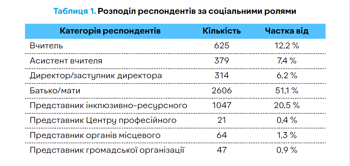 Воно мало на меті зібрати актуальну інформацію про стан інклюзивної освіти в громадах — як забезпечуються потреби дітей з особливими освітніми потребами, чи створене безбар’єрне середовище у навчальних закладах, а також із якими викликами стикаються батьки, педагоги й керівники закладів освіти.