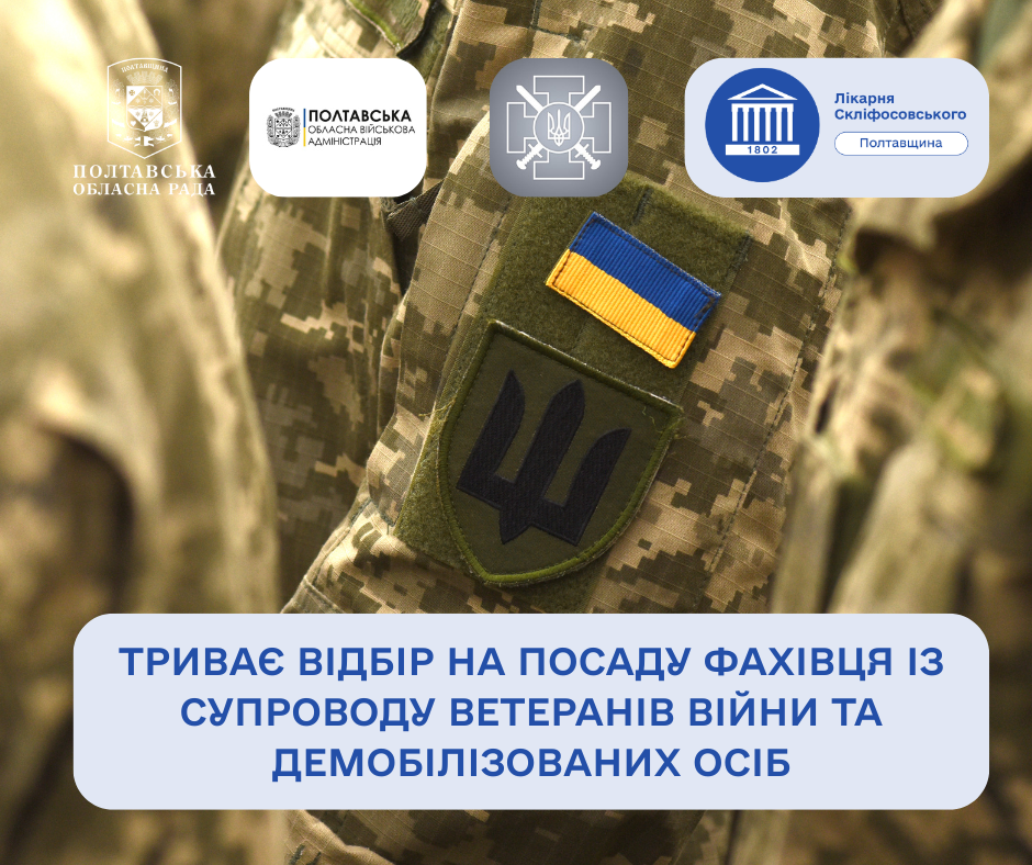 КП «Полтавська обласна клінічна лікарня ім. М.В. Скліфосовського Полтавської обласної ради» інформує про початок ІІІ етапу конкурсного відбору кандидатів на посаду фахівця із супроводу ветеранів війни та демобілізованих осіб відповідно до оновленого професійного стандарту.