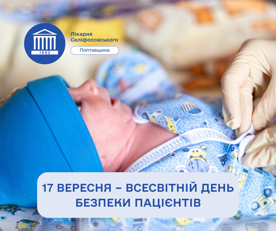 17 вересня під егідою ВООЗ відзначається Всесвітній день безпеки пацієнта. Цьогорічна тема присвячена захисту найменших пацієнтів – новонароджених та дітей від народження до 9 років під гаслом «Patient safety from the start!»: «Безпека пацієнта з самого початку!»