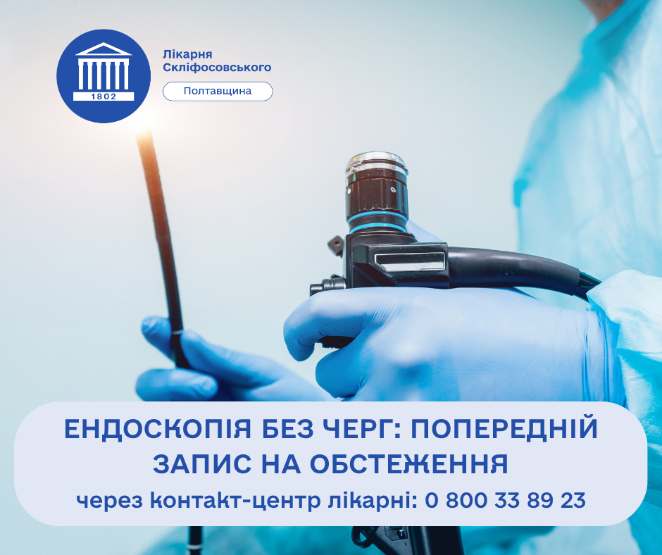 З 01.04.2026 р. у КП «Полтавська обласна клінічна лікарня ім. М. В. Скліфосовського ПОР» попередній запис на планове обстеження в ендоскопічному відділенні доступний через наш контакт-центр