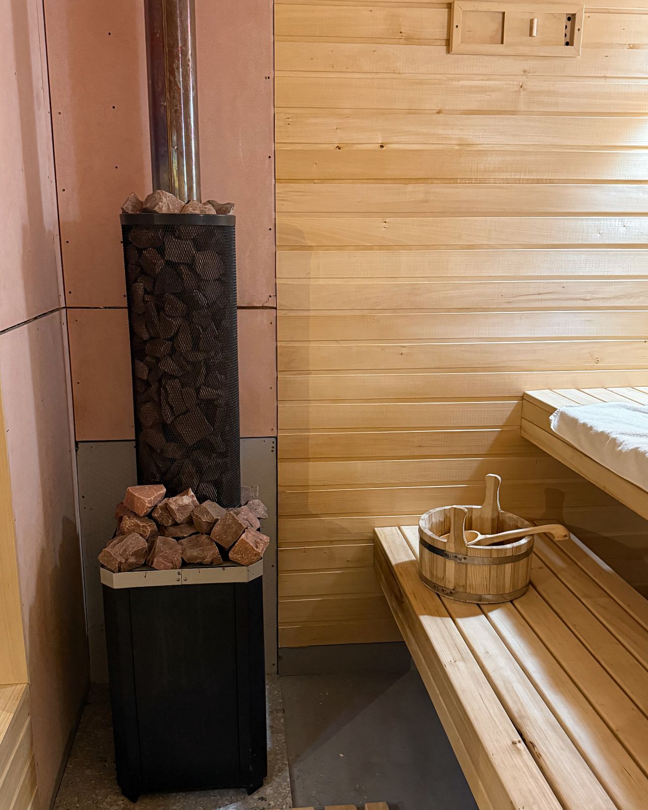 Лазня на території Глемпінгу «Острів» — це індивідуальний формат. Без спільних зон із незнайомими людьми. Без очікування. Простір працює виключно для гостей конкретного будиночка.