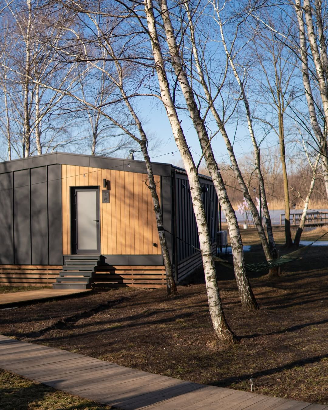У квітні територія Глемпінгу «Острів» особливо вражає своєю атмосферою: свіжа зелень, м’яке сонячне світло, ранковий туман над водою та відчуття повного перезавантаження.