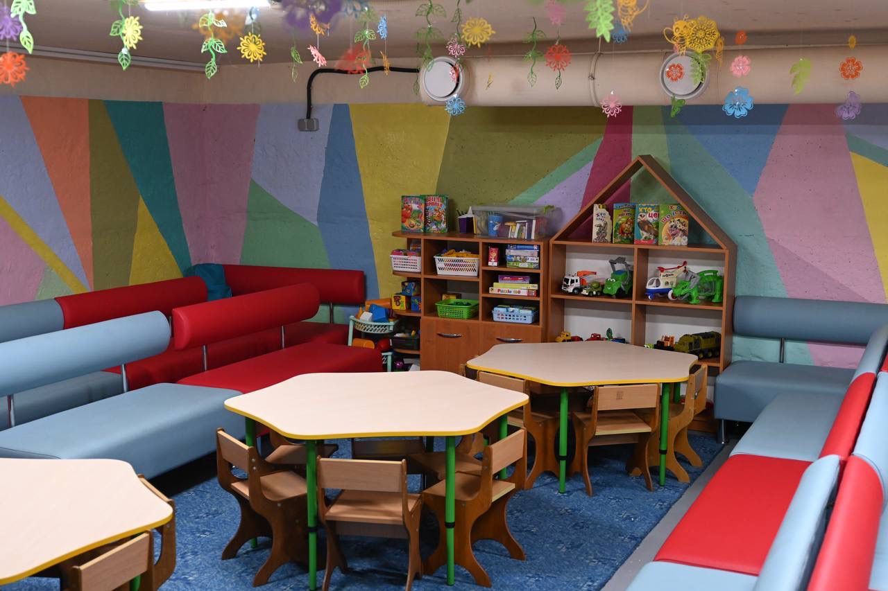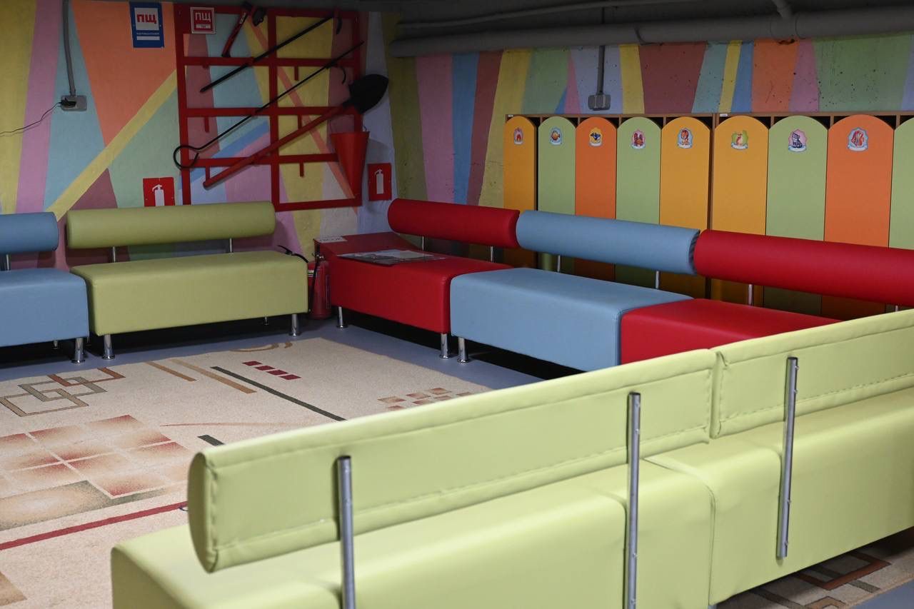 Укриття поділене на зони – від ігрових куточків до спеціально облаштованих приміщень для наймолодших груп, які можуть швидко та безпечно спуститися вниз. Передбачені меблі для різного віку, санітарні кімнати, а кольорова гамма підібрана так, щоб діти відчували комфорт, навіть перебуваючи у складних умовах. У разі відключення світла працює додаткове освітлення.