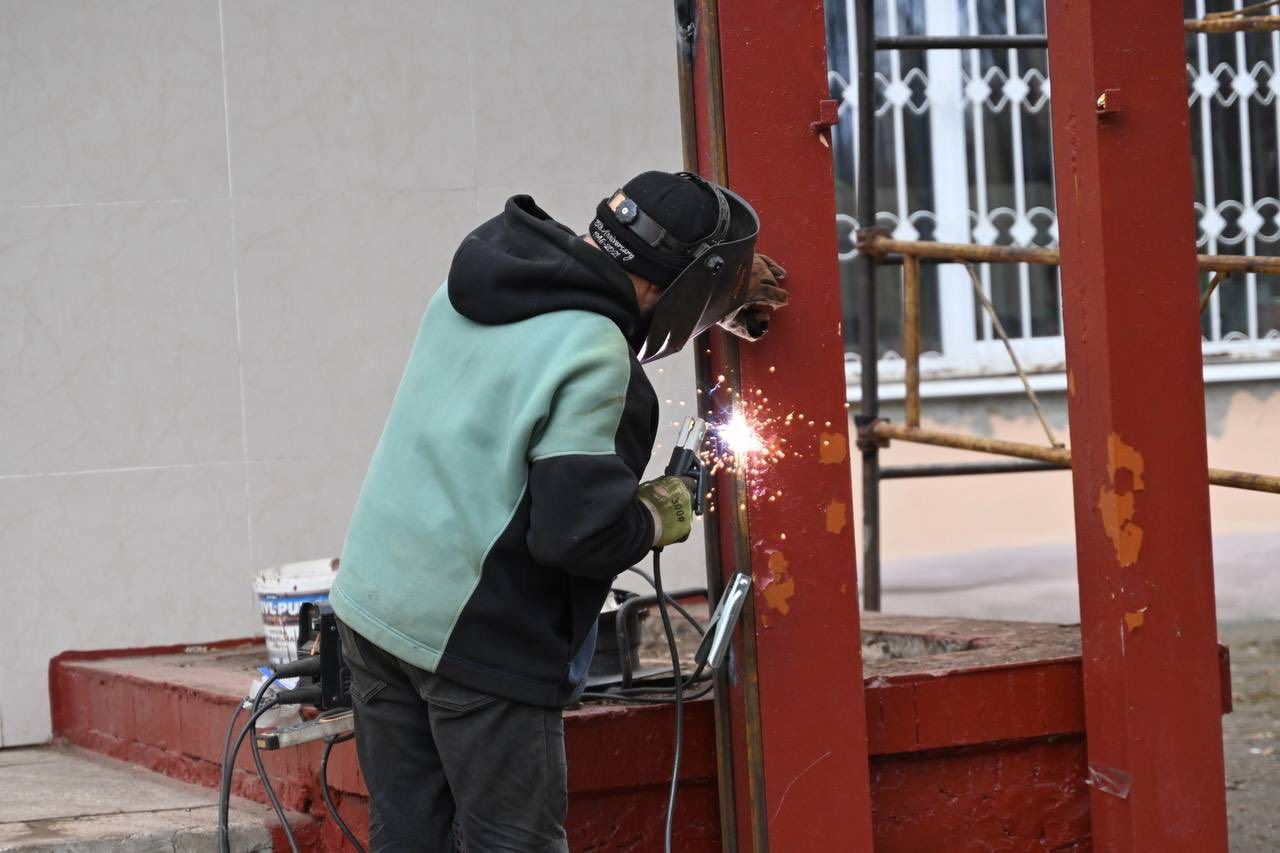 Перевірив ремонт у школі №30. Вже зробили новий металевий каркас і роблять покрівлю, бо старий дах протікав.