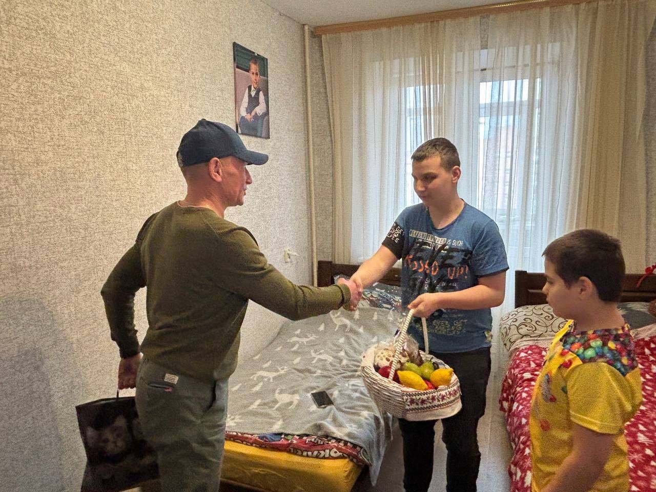 Напередодні Великодня відвідав пані Ірину та її дітей — Павла, Дар’ю й Олександра. Для їхньої родини цей Великдень особливий ще й тому, що в неділю Павлу виповнюється 15 років.
