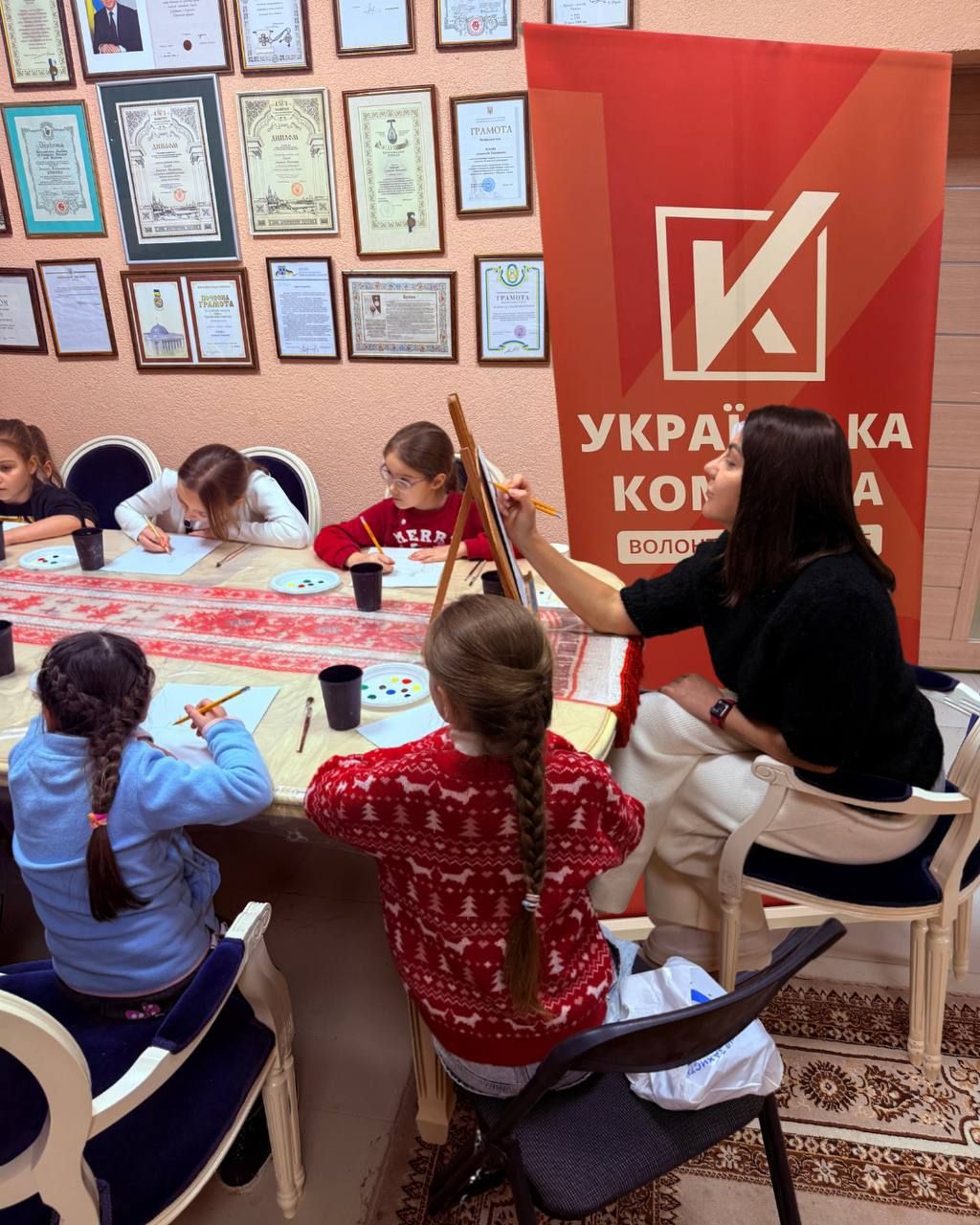 За сприяння керівника волонтерського штабу «Українська команда» на Полтавщині - Костянтина Іщейкіна відбувся художній майстер-клас із малювання новорічної тематики для дітей.