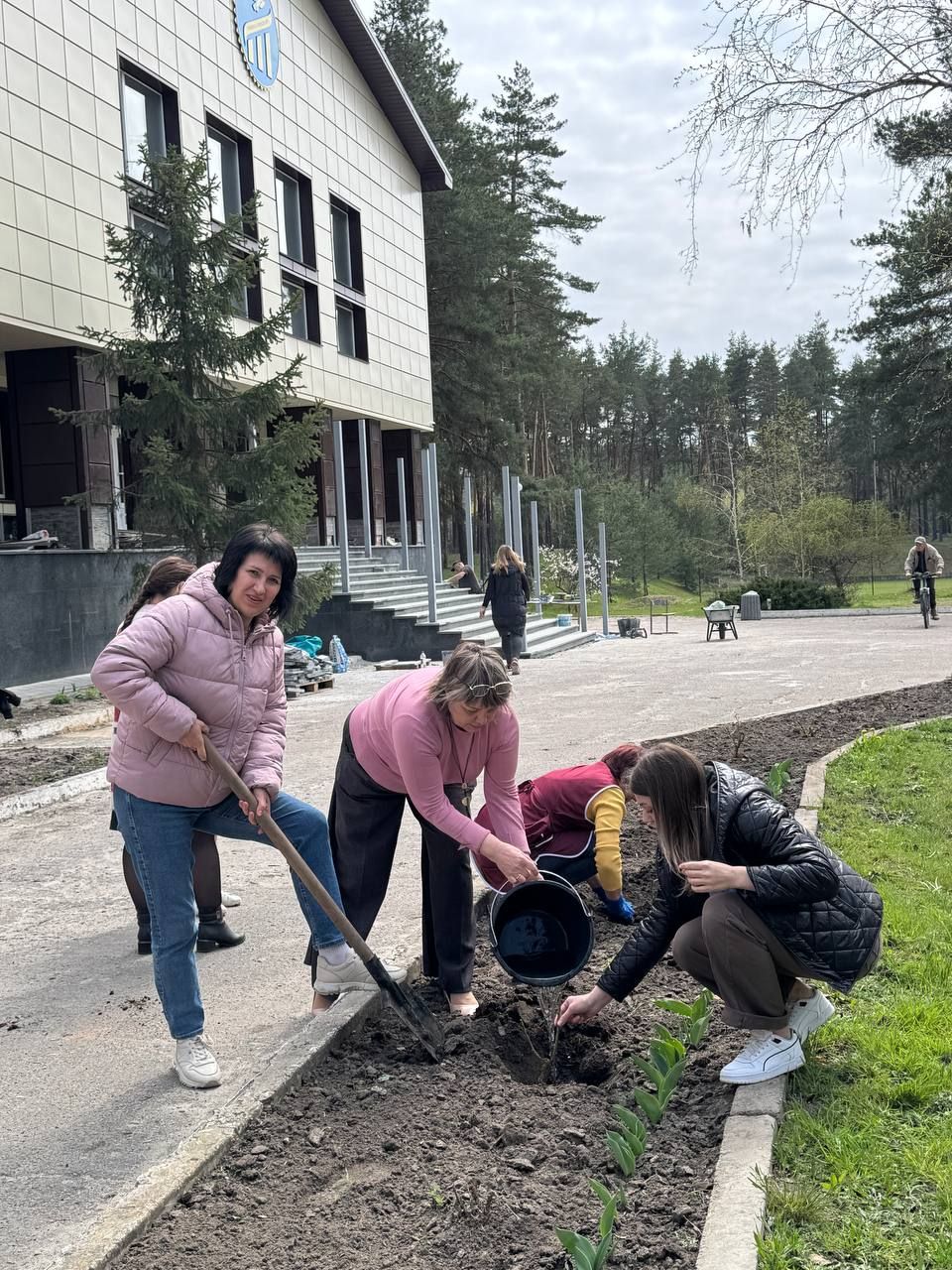 Під час візиту директорці Терешківського ліцею Ларисі Володимирівні Шевченко було передано троянди, які висадили на алеї перед входом до навчального закладу. До озеленення долучилися волонтери разом із колективом школи — спільно створюючи простір, який зустрічає дітей теплом і красою.