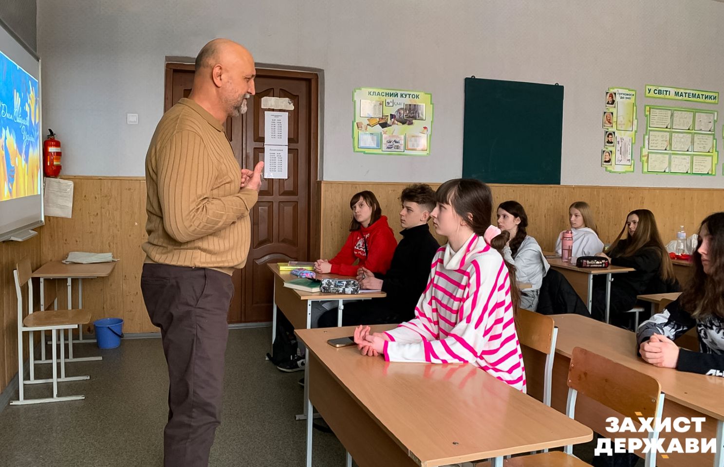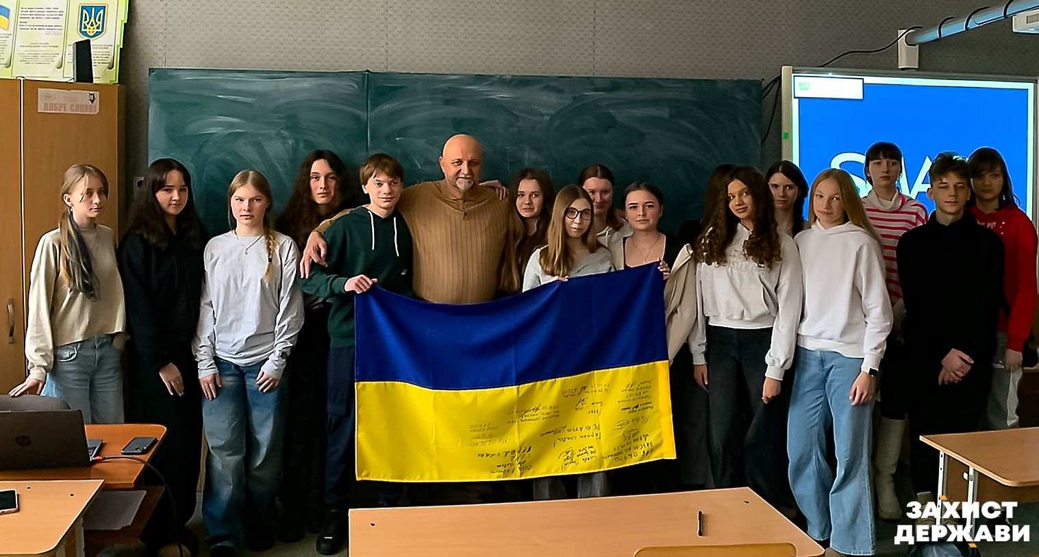 Очільник Полтавського обласного осередку ГО «Захист держави» Петро Ворона зустрівся з учнями Полтавського міського ліцею «Лідер», що на вулиці В’ячеслава Чорновола.