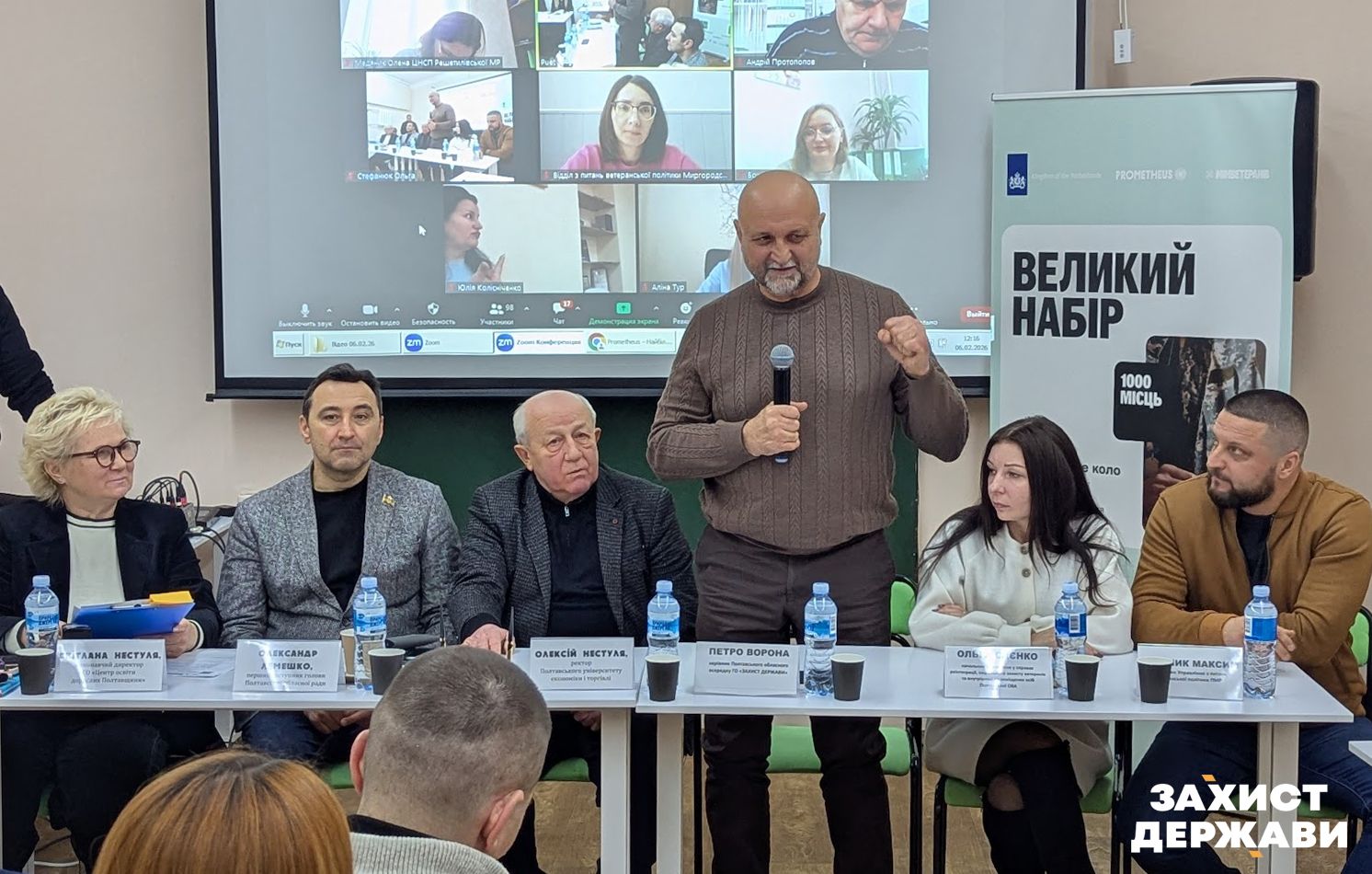 До обговорення долучилися представники обласної та міської влади, ветеранської спільноти та освітнього середовища. Серед учасників — перший заступник голови Полтавської обласної ради Олександр Лемешко, ректор ПУЕТ Олексій Нестуля, представники Полтавської ОВА та Полтавської міськради.